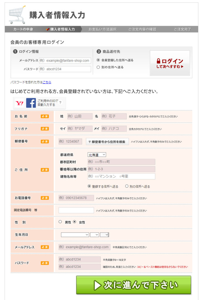 そして宛先などの個人情報を入力し、最後に支払い方法(各種クレジットカード・コンビニなどを利用した後払いを選択可)を選択して手続きが完了。