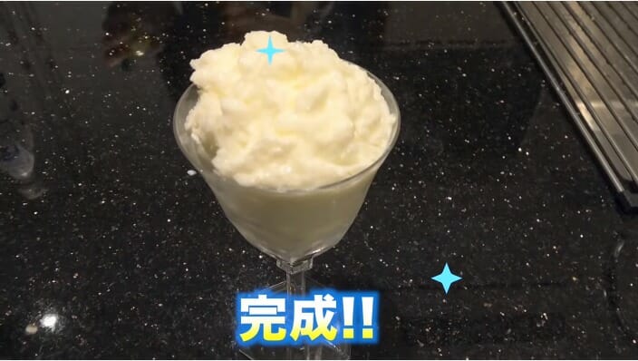 「カルピス150g」「ヨーグルト150g」「はちみつ小さじ4~5」を混ぜ冷凍して作る、料理の出来ないヒカキンでも作れそうなかき氷だったため、今回このかき氷づくりに挑戦してみたのだという。