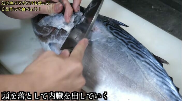 人によっては「カツオの中で一番おいしい」と言われることもある、幻のカツオ「スマガツオ」をさばき、カツオのたたきと刺身の2品を作ることに。