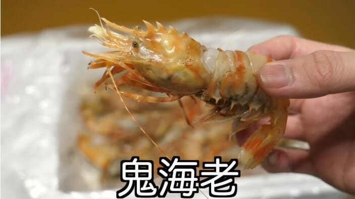 シンプルに食べたことがなく、味が気になってかねこが購入したという「鬼エビ」は、とげとげのある風貌がゴジラに似ていることから「ゴジラエビ」とも呼ばれるのだそう。