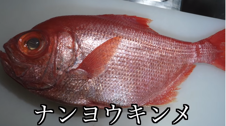 今回きまぐれクックかねこが調理する魚は、以前金目鯛をさばいた動画でもチラッと話をしていた、幻の金目鯛「ナンヨウキンメ」。