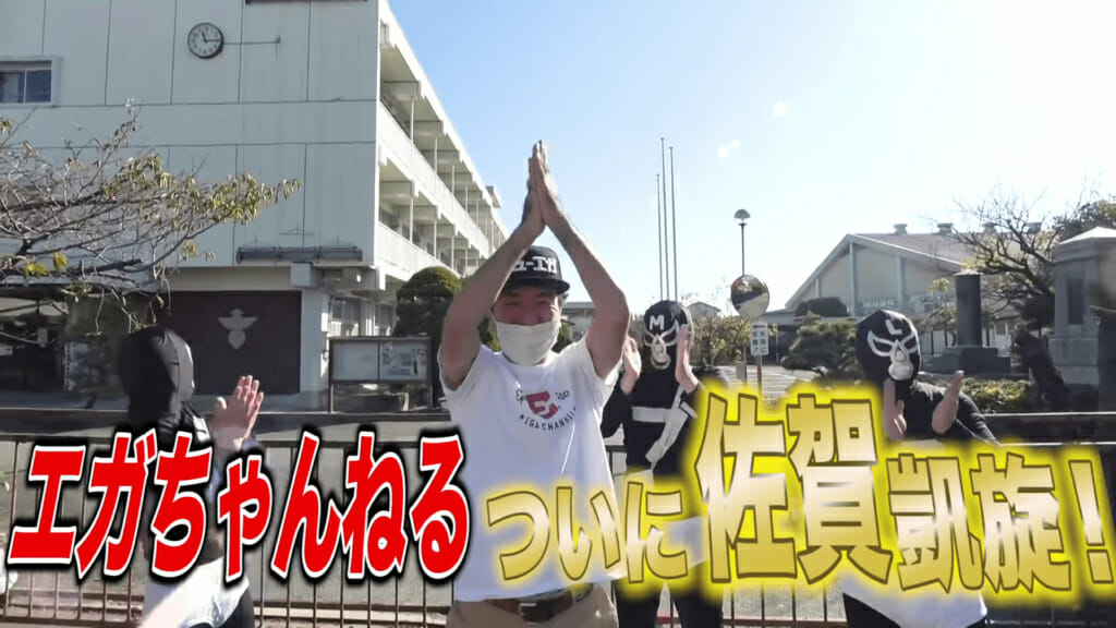 1年半ぶりに佐賀を訪れたエガちゃん。撮影前の日には90歳のエガちゃんの母親にマネージャーを紹介したとコメント。また「もっと早くブリーフ団と来たかった」とコメント。昔話をしながら地元を案内している。