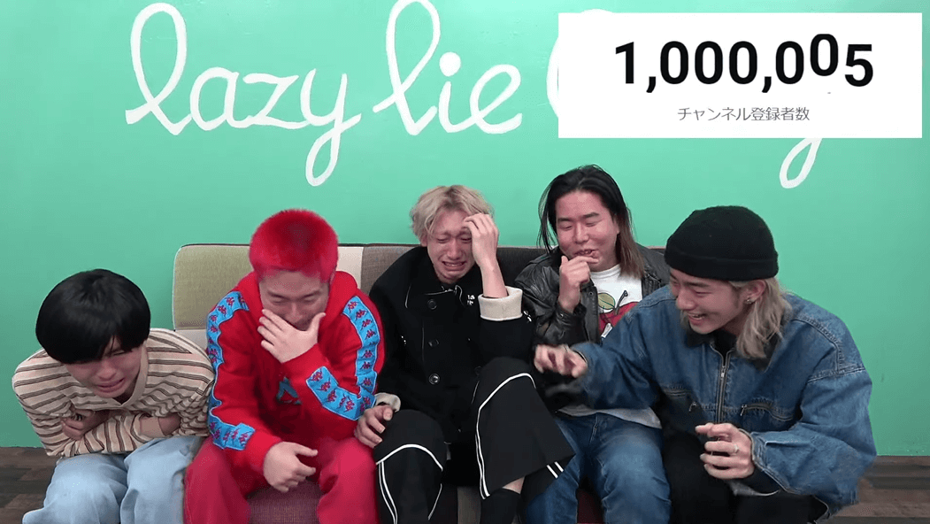 2021年11月16日5人組YouTuber Lazy Lie Crazy【レイクレ】のチャンネル登録者数が100万人を突破!その様子は生配信され、視聴者と一緒に喜びを分かち合った。また、レイクレは一旦休みを取ることも報告している。