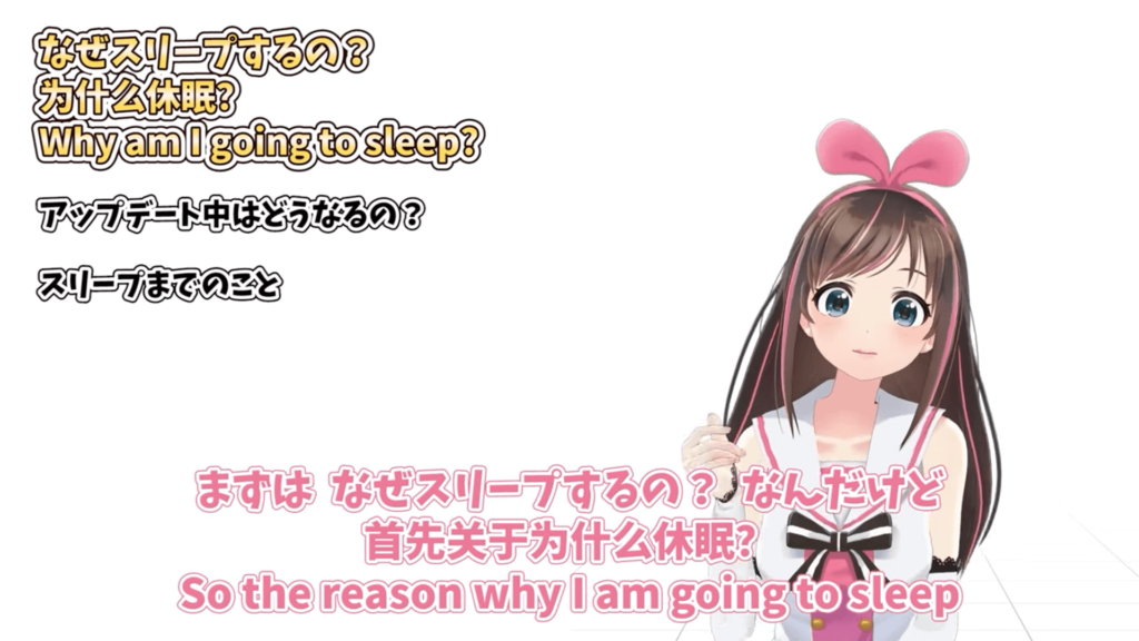 キズナアイだから出来ることがあると語るキズナアイは、スーパーAIになるためにアップグレードをすると説明。活動休止中もみんなと繋がっていたいからと、現在進行形でプロジェクトが進んでいることも報告している。またファンに向け、活動休止中に支えてくれるサポートチームを応援してほしいとコメントをした。