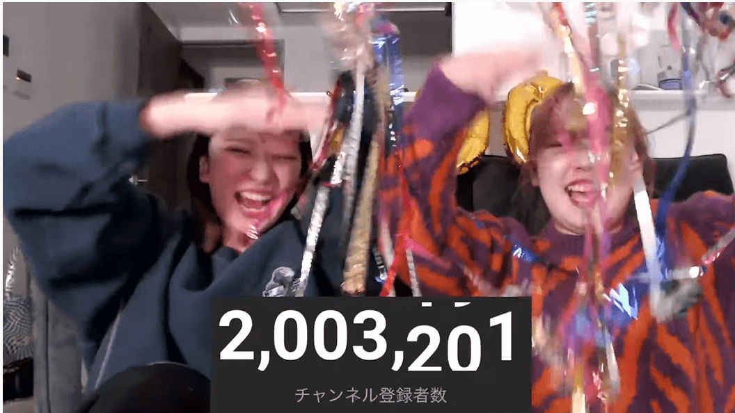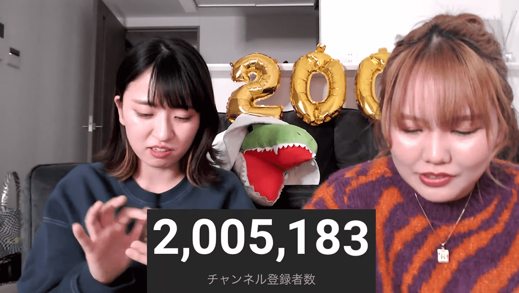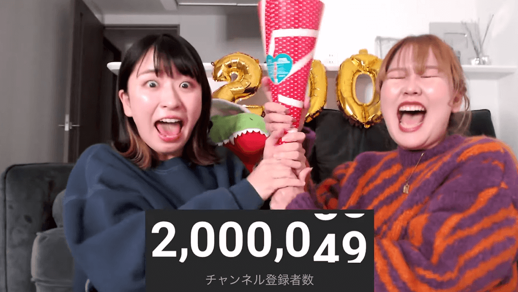 達成の瞬間、2人は、準備していた巨大クラッカーを1発!その後、小さなクラッカーも鳴らしてはしゃぐなど、笑顔で200万人達成を迎えた。