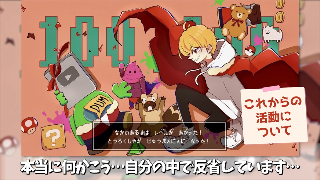 現在はゲームで食べていけるようになったのだが、ゲーム実況に慣れて調子に乗っている部分があり、見てくれている人がいることが当たり前になっている現状が良くないと反省している。と打ち明け、「心を入れ替えてまた頑張っていきたいと思っております」と意気込んだ。