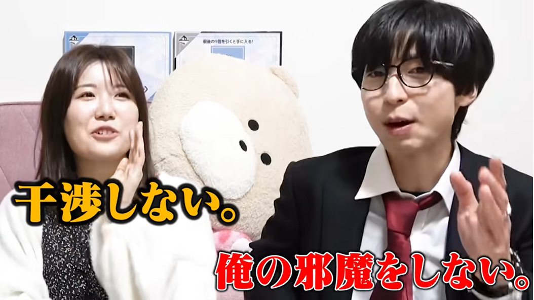 はなおとのえりんが合同なのかをチェックするため、結婚相手に求めることを「せーの」で同時に言ってみると、のえりんは「干渉しない」、はなおは「俺の邪魔をしない」と見事に一致!