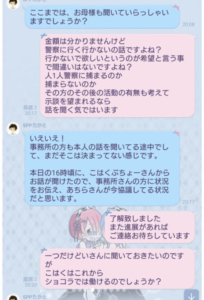 と、みっきーはこはくぶちょーと電話で話した際、隣にいた母親から頼まれたと言っていたが、ラインのやりとりが流出して嘘が判明。