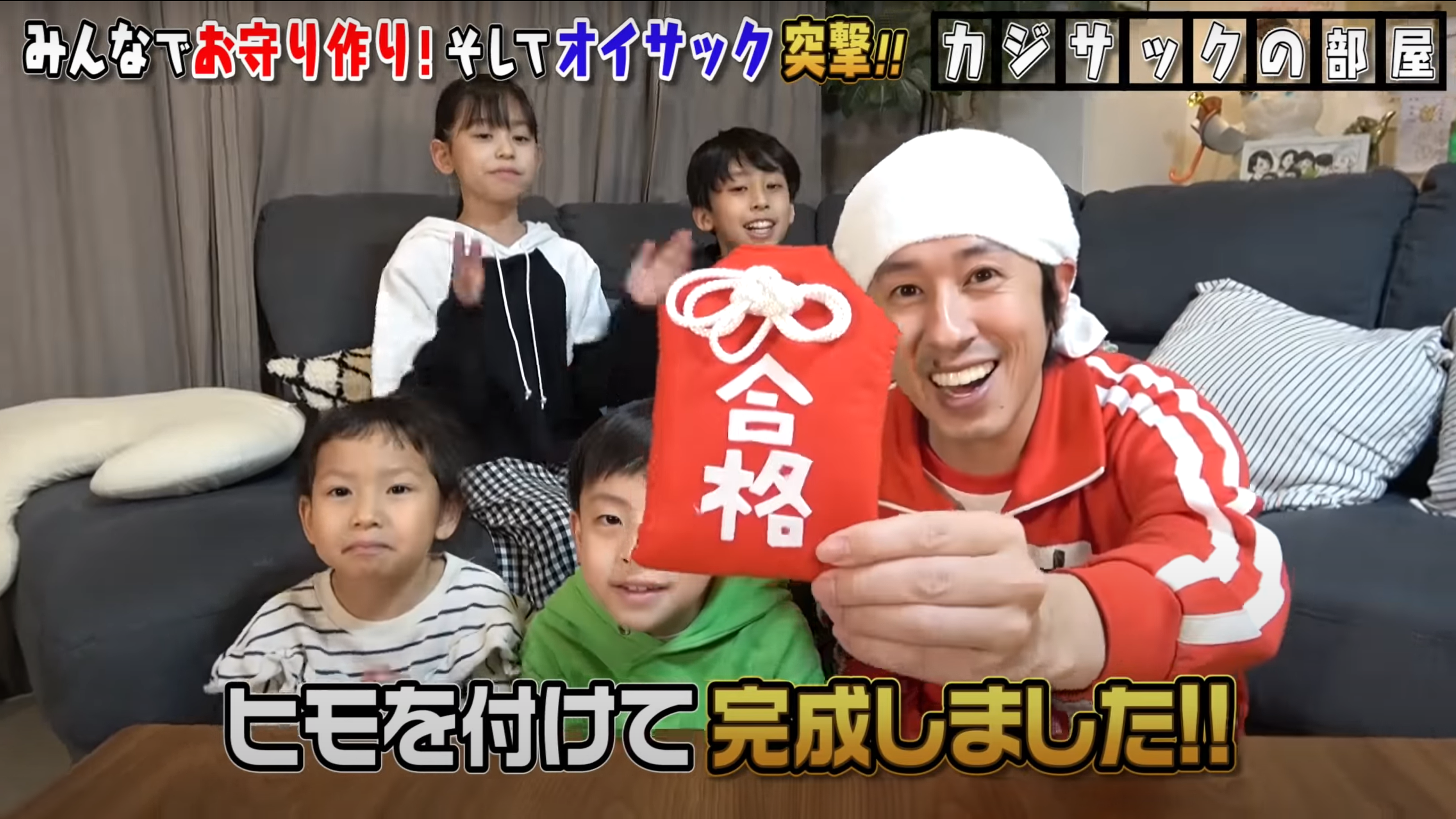 手作りのお守りについて、カジサックは、「ちょっと大きめの手作り作って、そこに“合格”とか書いてさ、中には子ども達からのメッセージカードとかひと言。それを。入れる用にちょっと大きめに作って、それを僕が持って行って突撃で渡すみたいな」と説明している。