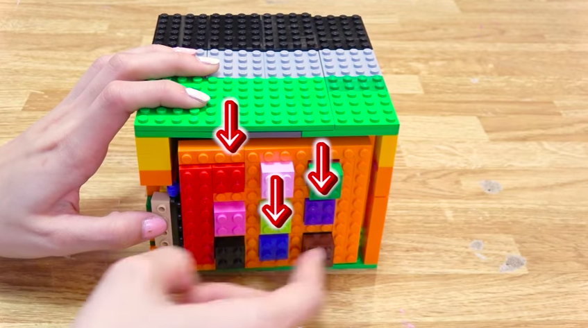 指定されたボタンを正しく押すことでスライドパーツが全て引っ込み、扉のロックが解除される。
