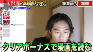 次の試練まで漫画を読みながら、くつろいで過ごすはるくん。