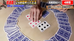トランプタワーの作成が苦手だと話すはるくんであるが、めげずに挑戦してゆく。タイムリミットは1時間、それまでに完成させることは果たしてできるのか……?