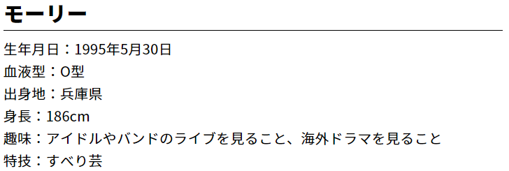 95年05月30日生まれ:モーリー(禁断ボーイズ)