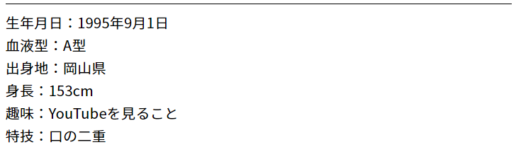 生年月日は1995年11月06日で、2018年10月31日現在の年齢は22歳だ。