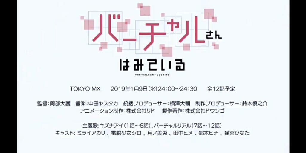 本作はTOKYO MXにて2019年1月9日(水)24時から毎週水曜日に放送。