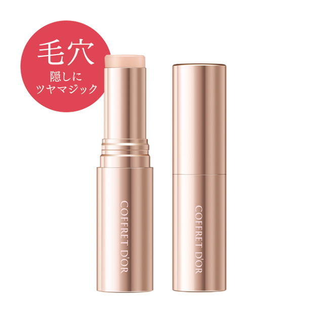 次にコフレドールの「マジカルグロウスティック」を3mm程出し、小鼻・頬など毛穴が気になる部分・ツヤを出したい場所に直接滑らせるように塗る。