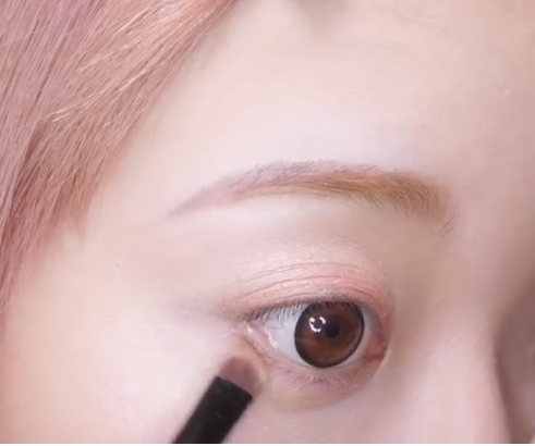 次に、二重幅にピンクのシャドウをのせていく。