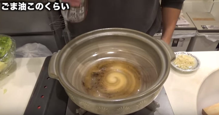 鍋に胡麻油を敷き、火にかける。