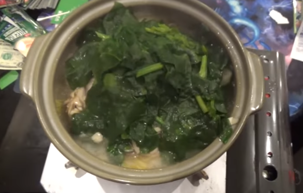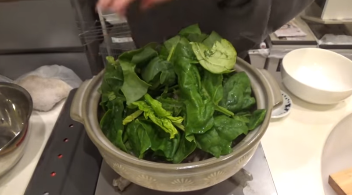 最後に舞茸→ほうれん草の順番に鍋に入れ、火が通ったら完成。