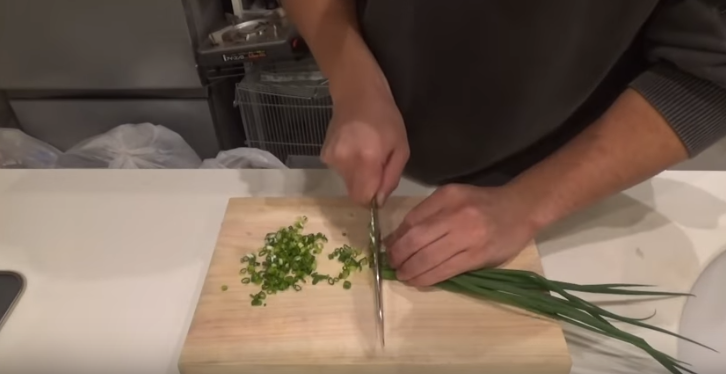 小ねぎを細かくきざむ。