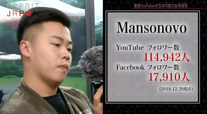 2018年12月28日、BSフジで放送中の「ESPRIT JAPON(エスプリジャポン)」に、香港で活躍するYouTuberのPuiさん、Mansonさんの2組が出演。