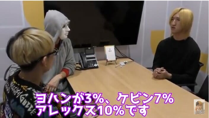 A.コレコレも取り上げたチョコスモの収入分配『ジョンレノ80%、ヨハン3%、ケビン7%、アレックス10%』は事実で、仕事量などから周りの大人とも話し合って決めたパーセンテージ。