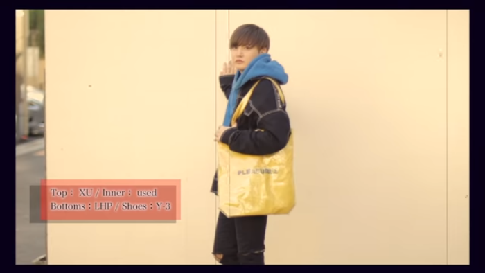 やっぴが最初におすすめしたのはアディダスのボトムスでラフ感を演出しつつライダースでビシッと決めるこちらのコーディネート。首元に厚めのマフラーを巻けば色で印象が変わってきそう。