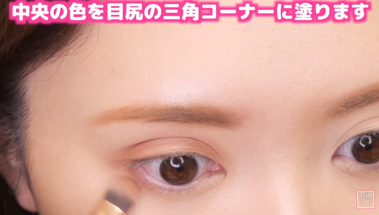 同じカラーを次は目尻の三角コーナーに塗っていく。