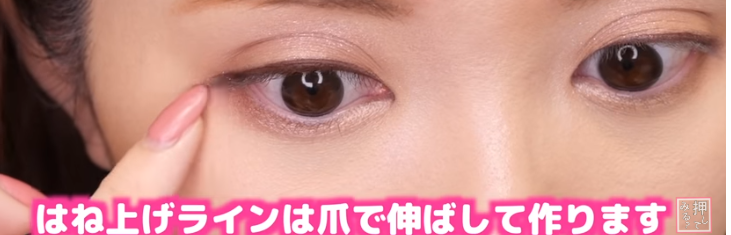 目尻部分は2ミリ程オーバーするぐらいまで描き足し、はね上げラインは爪で軽く伸ばして作っていく。