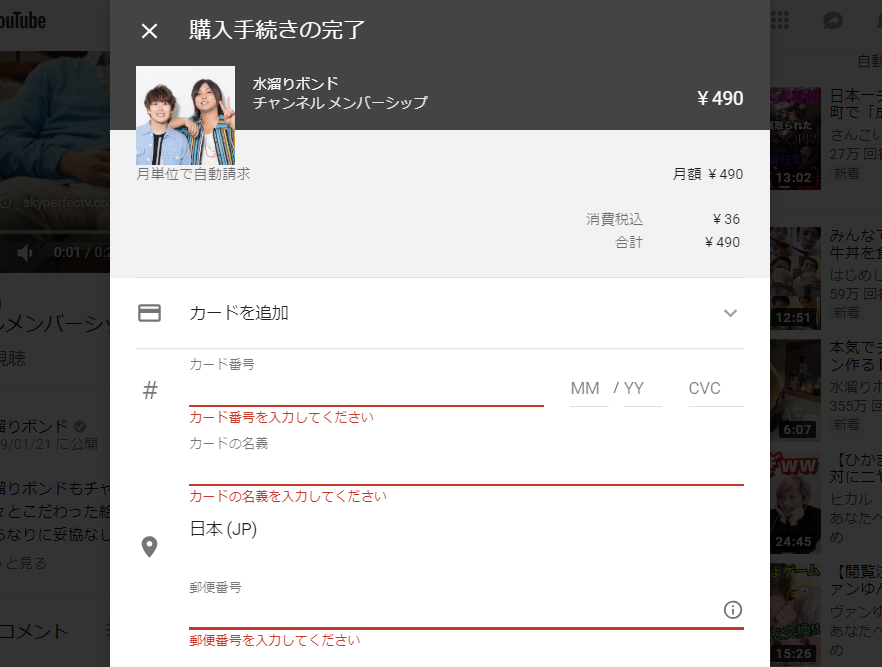 ・②の特典を受けるには、②のチャンネルメンバーになり、①に課金した金額とはまた別に月額490円を課金しなければならない。