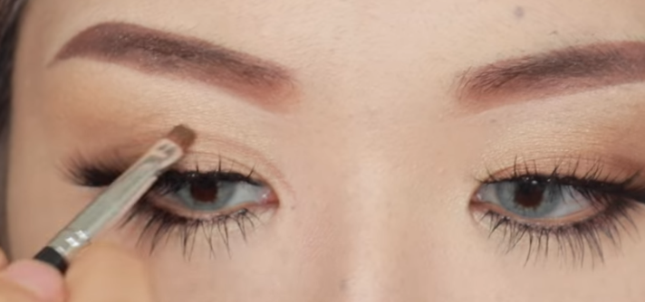 ブラウンは二重幅より少々オーバーしながら目尻に向けて乗せていく。