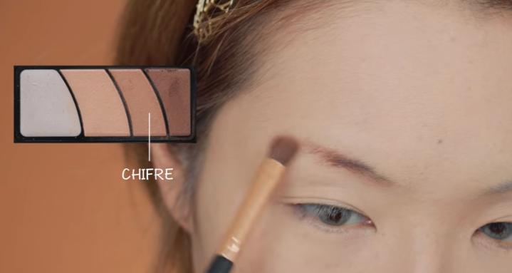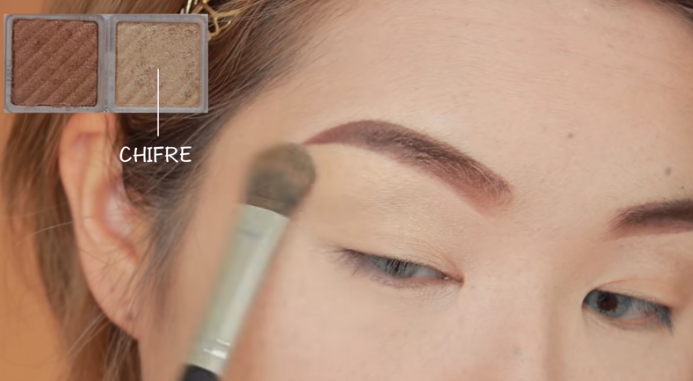2番目に濃いカラー(上画像参照)を筆に取り、大体の眉毛の形を形成していく。