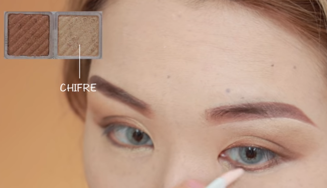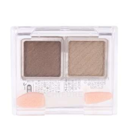先程使用したアイカラーの72番(ブラウン&ピンク)のブラウンをチップに取り、二重幅を埋めていく。