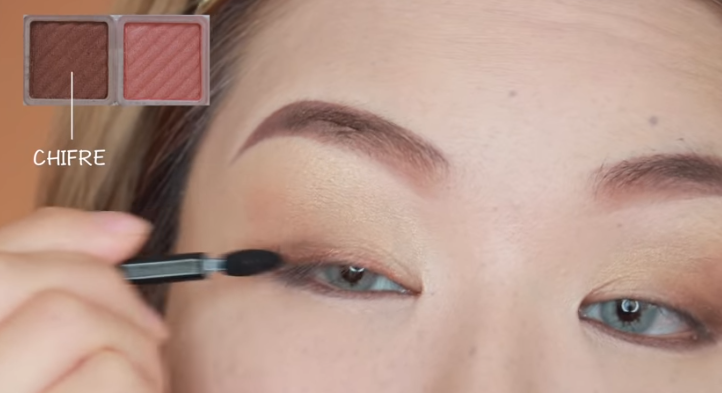 アイシャドウはブラウン・ゴールドのカラーを使用。