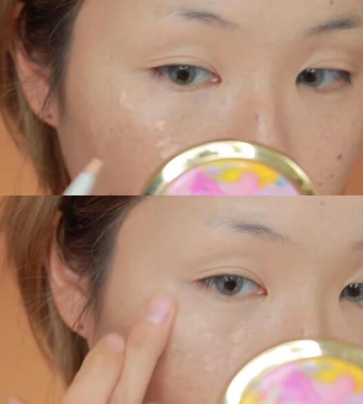 コンシーラーでニキビ跡やそばかすなど、気になる部分をカバーしていく。