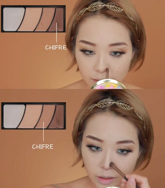 ノーズシャドウとシェーディングは眉毛に使用したアイシャドウを使っていく。