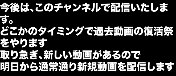 また、ガイドラインに抵触しない動画については後々新チャンネルで再投稿されるとのこと。