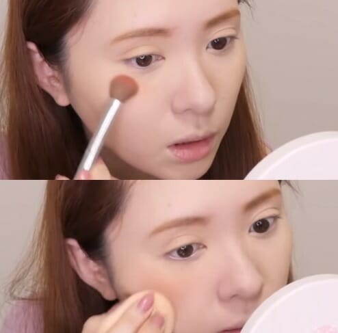 こちらも、色を乗せただけだとかなり濃い色になってしまうので、まぶたと同じ要領で柔らかい筆でぼかしていこう。