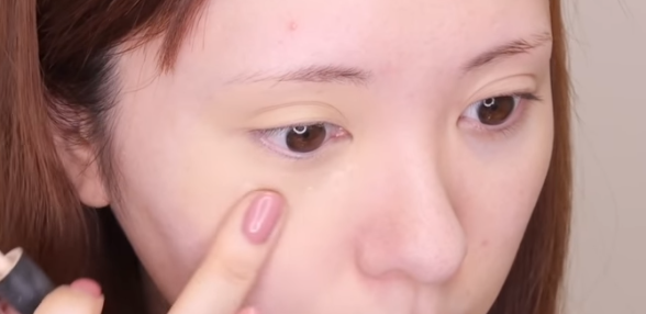 きつい印象を柔らかくするため、仕上げにハイライトのシャドウを涙袋に乗せ、先ほど乗せたシャドウを軽くぼかしてあげる。