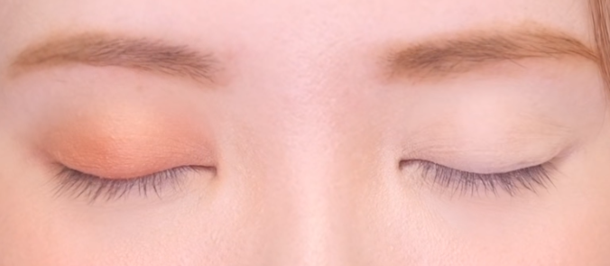 アイシャドウは、先程チークで使用したカラーコンパクトの真ん中のカラー(商品画像参照)を使用。