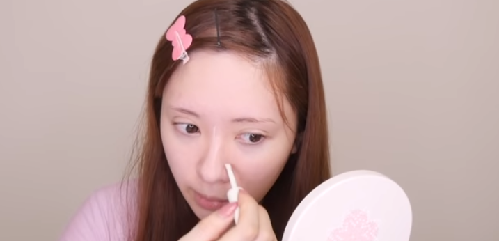 更に、鼻などのテカリが気になる部分にエテュセのオイルブロックベースを塗っていく。