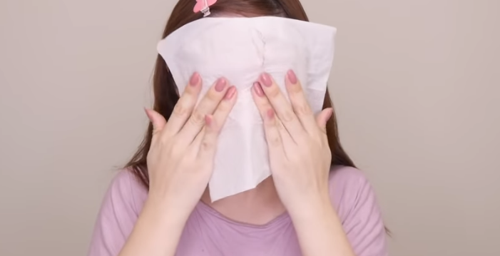 まずはじめに、肌に乗っている余計な油分・皮脂をティッシュで軽く押さえて取り除いていく。