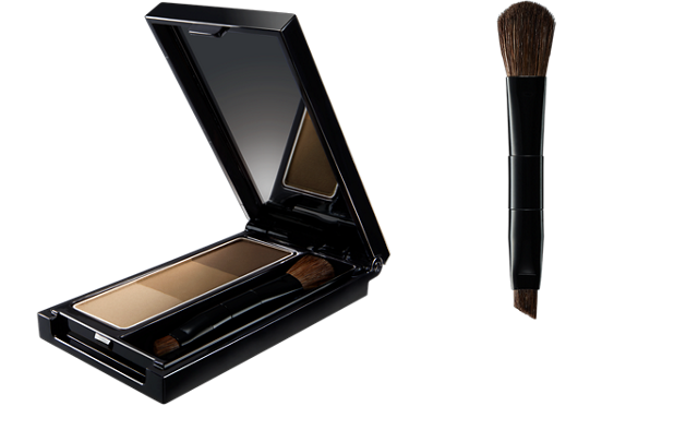 付属の筆を使い、真ん中・一番明るいカラー(商品画像参照)を混ぜて眉毛をの形を作っていく。