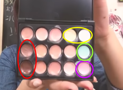 ニキビなどの赤みカバー→グリーン系(黄緑で囲った部分)