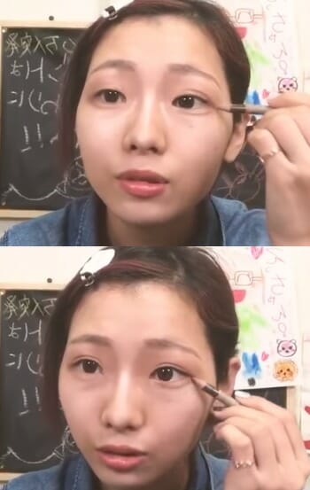 ついでに、同じペンシルを使ってダブルライン・涙袋の影も一緒に描いてあげよう。
