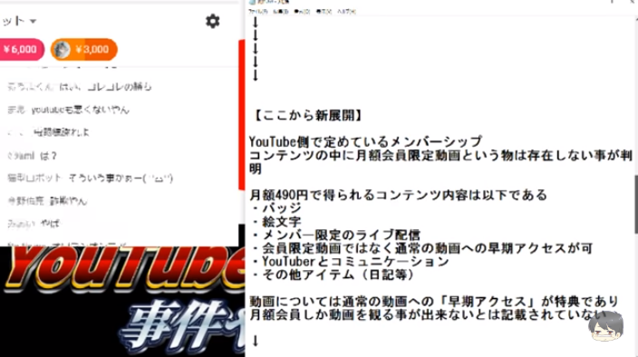 コレコレが直接YouTubeに問い合わせをし、なんとチャンネルメンバーシップの特典に「月額会員限定動画」というものが存在しないという事が判明。