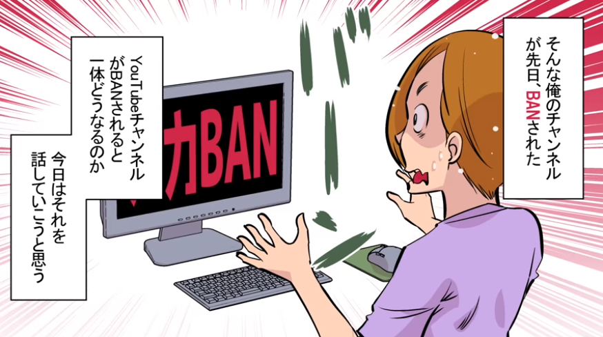 アカウントがBANされたチャンネルがどうなるのかを漫画でわかりやすく解説。