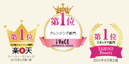 iVoCEのクレンジング部門やYAHOO!Beautyのスキンケア部門・楽天のその他クレンジング部門などの有名コスメランキングでで1位を獲得しており、この点だけでも十分に一度試して見る価値ありの商品と言えるだろう。