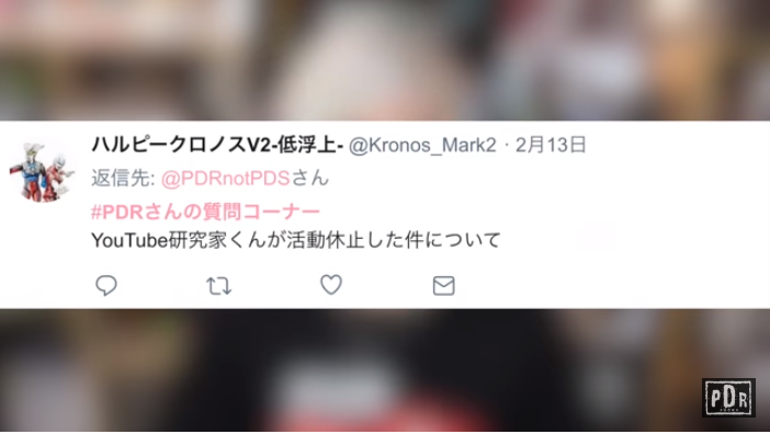 2019年02月18日、PDRさんが「YouTube研究家の活動休止について」を公開。