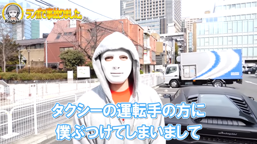 2019年2月19日に投稿された動画「【悲報】買って速攻ランボルギーニで事故しちゃいました。【Lamborghini Raphael】」でランボルギーニで事故を起こしたとしてラファエルが珍しい焦り姿を披露した。